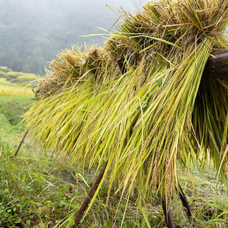雨の中、汗びっしょりになってオーナーの皆様の手によって実った「なついろ」が刈り取られ、昔ながらの天日干しをおこなう「はざかけ」が建てられ、刈り取った稲を束ねてかけられていきました。